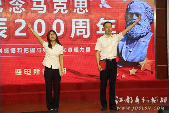 ? ????本站讯 ?为纪念马克思诞辰200周年、《共产党宣言》发表170周年,引导广大党员干部职工深入学习掌握马克思主义基本原理,5月22日下午,我处举办“马克思主义青年说”党建沙龙活动,来自18个党支部和处团委的170余名党员、青年奉献了一场异彩纷呈的党建沙龙活动。 ??? 处党委书记、主任辛华荣在致辞中表示,马克思主义思想理论博大精深、常学常新,必须不断提高运用马克思主义分析和解决实际问题的能力,不断提高运用科学理论指导我们应对挑战、化解矛盾、解决问题的能力,用更加扎实的措施、更加有力的行动来推动马克思主义思想理论在高质量建设江都水利枢纽管理现代化建设中落地生根。 ??? 活动中,表演形式多样,既有严肃的理论对话,又有活泼的舞台表演;表演参与面广,全体处领导、党支部书记都走上舞台,与干部职工一起演节目,话感悟。团委舞台剧《映像》,将默剧、朗诵、说唱、合唱等表演形式融合,青年们从马克思主义的诞生演绎到新时代水利建设,发出了“我们应该为人类的幸福而劳动”的时代强音;理论对话节目《爱学习的马克思》《你好,马克思》,通过座谈和问答的形式阐述了马克思主义思想和《共产党宣言》形成的过程,既有理论深度,又有很强的现实意义;经典朗诵节目《诗会马克思》《共产党宣言》《在马克思墓前的讲话》,通过朗诵马列经典著作,感知真理的力量,把握时代的脉动;原创配乐朗诵《马克思主义中国化历史进程》《中国中国鲜红的太阳永不落》《四十年励精图治 新时代砥砺前行》等节目,通过铿锵有力的话语,表达了水利人对马克思主义的理解,对伟大祖国的歌颂;音乐快板《改革开放喜事多》,以欢快的节奏带领大家走过改革开放这四十年;合唱节目《信仰的味道》《光荣与梦想》《永恒的信仰》,高亢嘹亮的嗓音,整齐划一的动作,品尝着信仰的味道,诠释着共产党人对信仰的理解与坚持。 ??? 据悉,本次党建沙龙活动是我处“仰望信仰的星空?五个一”系列活动之一,全处上下掀起了学习马列经典的热潮。广大党员干部职工在沙龙中品味经典,表示要真正掌握马克思主义精髓,做马克思主义的坚定信仰者、自觉拥护者、积极践行者,担负起高质量推进江都水利枢纽管理现代化的历史使命。