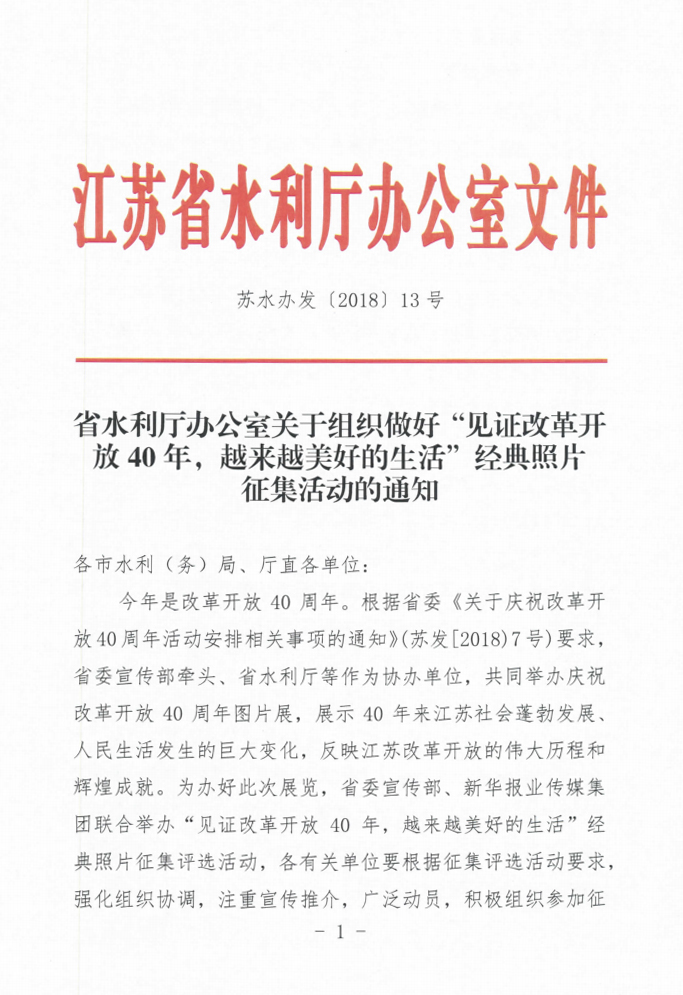 省水利厅办公室关于组织做好“见证改革开放40年,越来越美好的生活”经典照片征集活动的通知