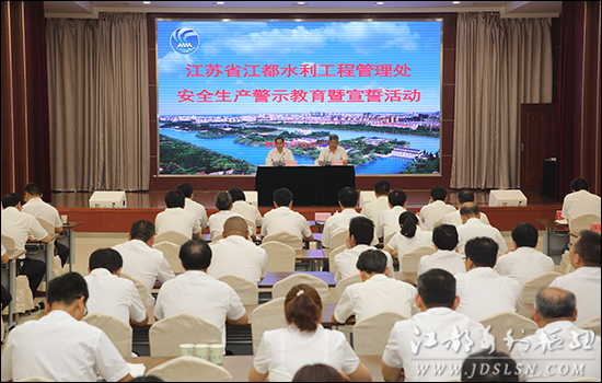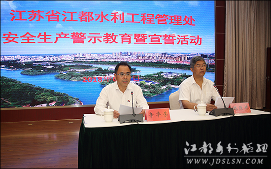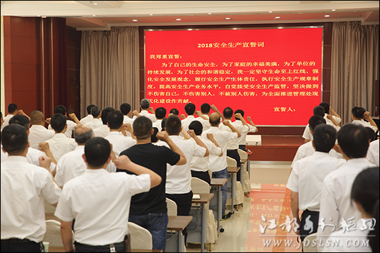 ????本站讯 ?6月7日上午,处开展了以“生命至上、安全发展”为主题的安全生产警示教育暨宣誓活动。处领导、各单位(部门)负责人、安全员、班组长、技术干部、机关全体职工近120人参加活动。 ??? 在处主任、党委书记辛华荣的带领下,大家庄严地举起右拳,铿锵有力地进行了宣誓:“为了自己的生命安全,为了家庭的幸福美满,为了单位的持续发展,为了社会的和谐稳定,我一定坚守生命至上红线、强化安全发展观念,履行安全生产主体责任,执行安全生产规章制度,提高安全生产业务水平,自觉接受安全生产监管,坚决做到不伤害自己,不伤害别人,不被别人伤害,为全面推进管理处现代化建设作贡献。” ??? 宣誓活动上,辛华荣对安全生产工作的重要性进行了阐述,并对“安全生产月”活动进行了再动员、再部署,同时结合我处当前工作提出了具体要求。他指出,扎实开展 “安全生产月”活动,旨在集中时间、集中精力,广泛宣传党和国家关于安全生产的方针政策及法律法规,增强全民安全意识,提升全员安全素质,提高识险避险救险能力,有效防范和坚决遏制重特大事故发生。他强调,确保安全生产、促进安全发展,首在安全责任,重在抓好落实。各级人员要牢固树立安全生产红线意识,强化责任担当,坚持警钟长鸣、常抓不懈,决不能有任何侥幸心理。我们即将迎来主汛期和高温季节,防汛防旱任务繁重,安全生产形势更加严峻,各闸站工程管理单位和经营工地要严格执行防汛值班制度,加强工程维护和巡查,各服务保障单位要强化技术支持、后勤服务和相关场所安全、食品卫生工作,确保工程安全运行和职工职业健康。 ??? 随后,大家观看了《走进新时代如何打造安全生产新格局》和《2017重大火灾》警示教育片。??? ??? 本次警示教育暨宣誓活动,是我处“安全生产月”系列活动的启动仪式,接下来,内容新颖、形式多样的活动将陆续开展。